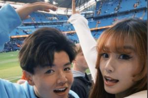 支持曼城👀徐彬女友晒照,两人现场观看天王山之战曼城vs阿森纳